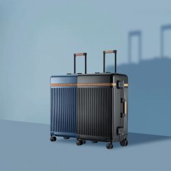 英國 VERAGE 20076 鋁合金架配超纖皮革TSA LOCK 行李箱 – 29″/25″黑色/藍色 (品牌直送)
