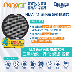 殺滅omicron新冠病毒| NMA-12 納米殺菌替換空氣濾芯 (NanoFIL NMA-12 空氣清新機專用)(品牌直送)